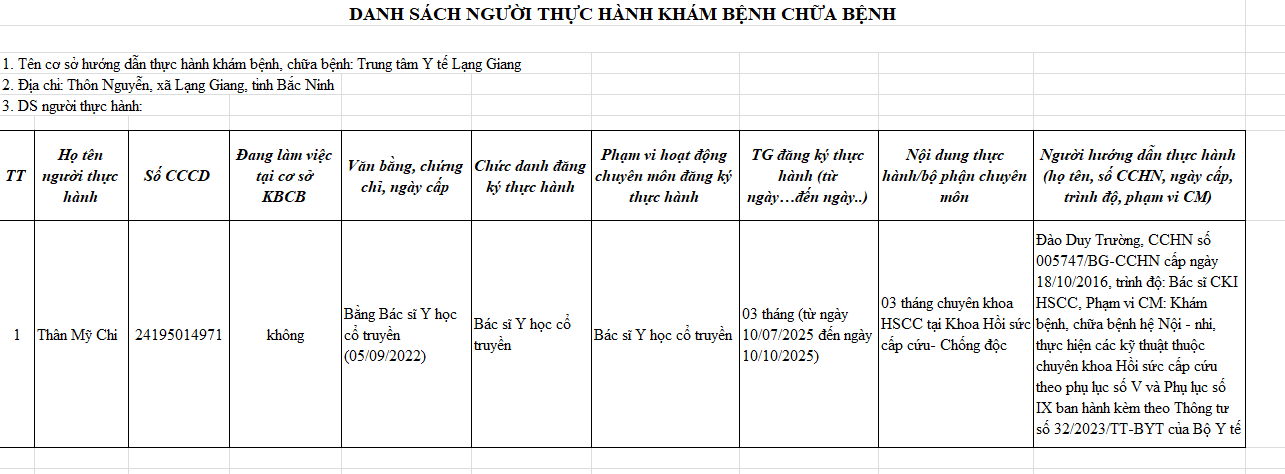 Danh sách người thực hành khám bệnh, chữa bệnh